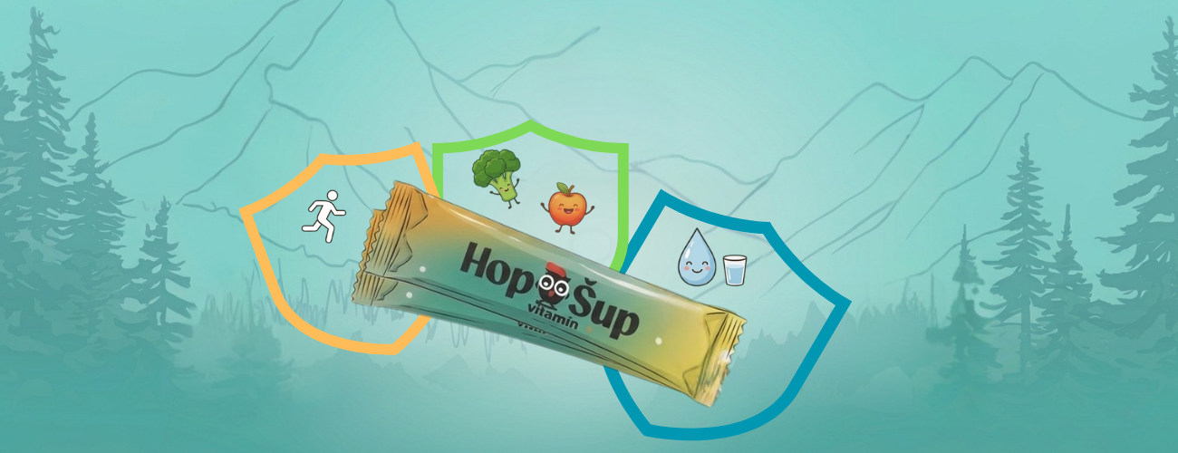 Hop Šup Immunity Boost C + D + Zinok: táto kombinácia troch kľúčových mikroživín cielene podporuje silu imunitného systému. Vitamín C funguje ako silný antioxidant, vitamín D podporuje imunitnú odpoveď a zinok pomáha správnej funkcii obranných buniek.